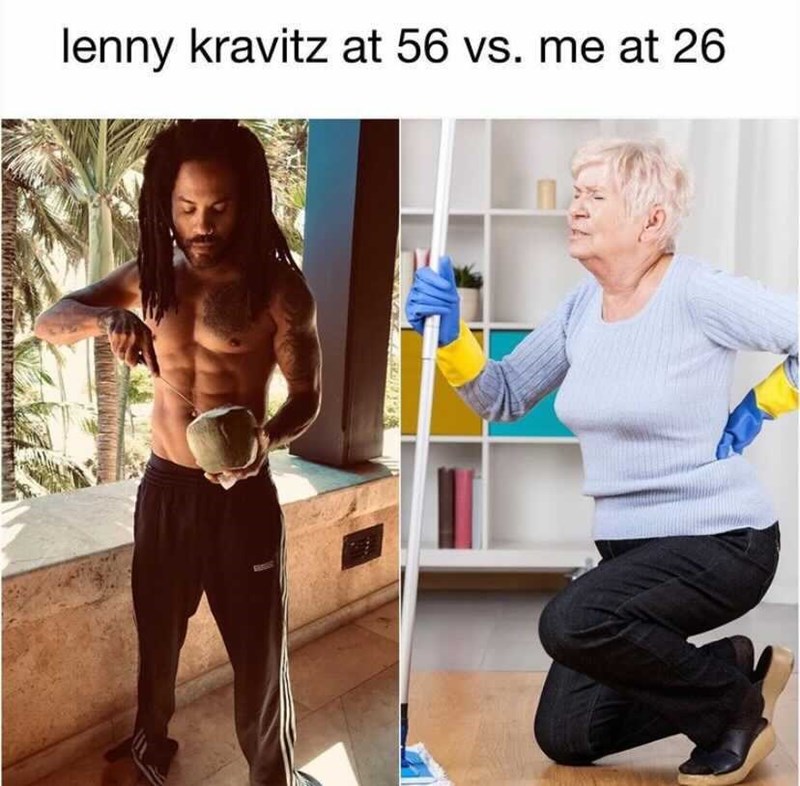 It's not really smart to compare ourselves to Lenny Kravitz, on any scale. Some people just don't age, especially celebrities. But a lot of that is because they get certain procedures that ensure it can't happen. I can't speak for Lenny Kravitz, but maybe he took an anti-aging potion as well?