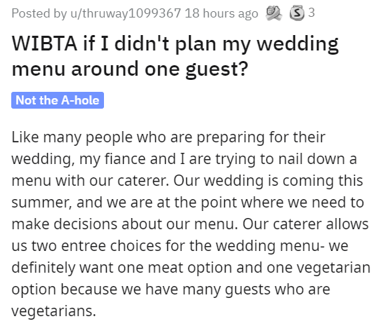 Gluten Free Vegan Plus One Wants Wedding Catered To Her