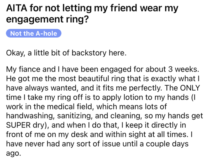 Woman Doesn't Let Coworker Wear Engagement Ring, Coworker Gets Offended