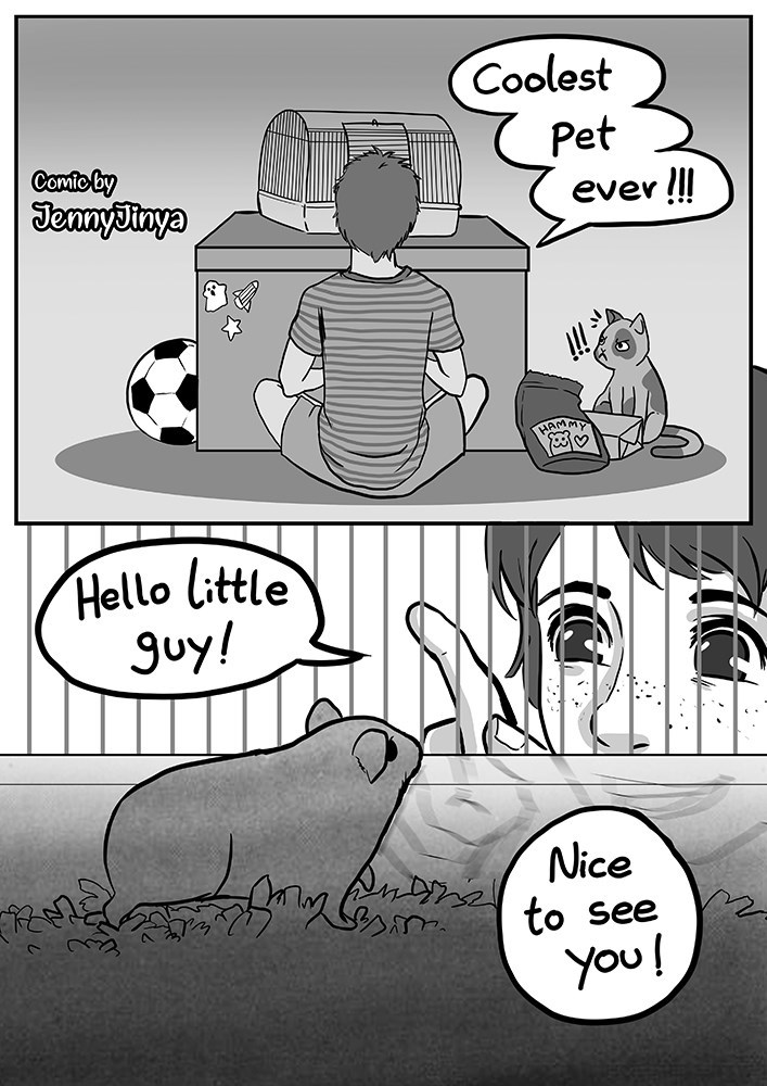 Personally, I never had a hamster growing up, but I knew plenty of kids who did, and whenever we'd hang out, there was no interest in playing with the hamster. Looking back at it now, it breaks my heart. I truly hope none of them were lonely. Jinya has a gift for telling an impactful story and getting the message out there.