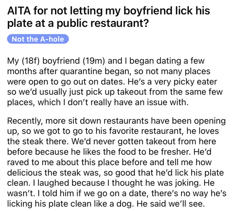 Man Insists On Licking Dinner Plate Clean, Girlfriend's Not Down
