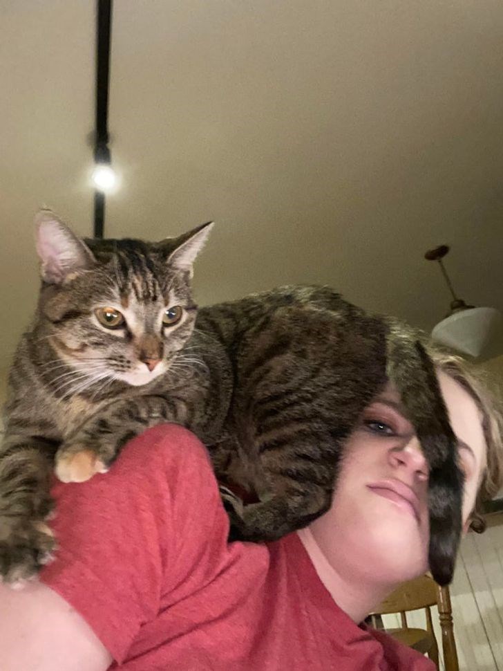 “Friend: what is your cat doing up there? Me: don't acknowledge him, he's just trying to get attention and I won't play his game”