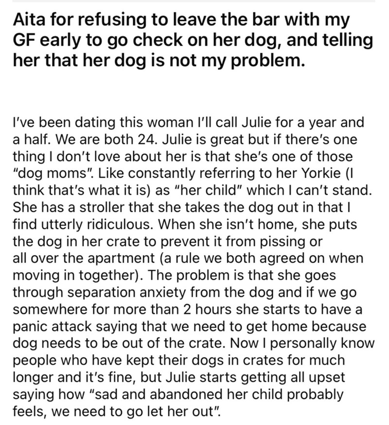 Man Tells Girlfriend She's Too Obsessed With Her Dog