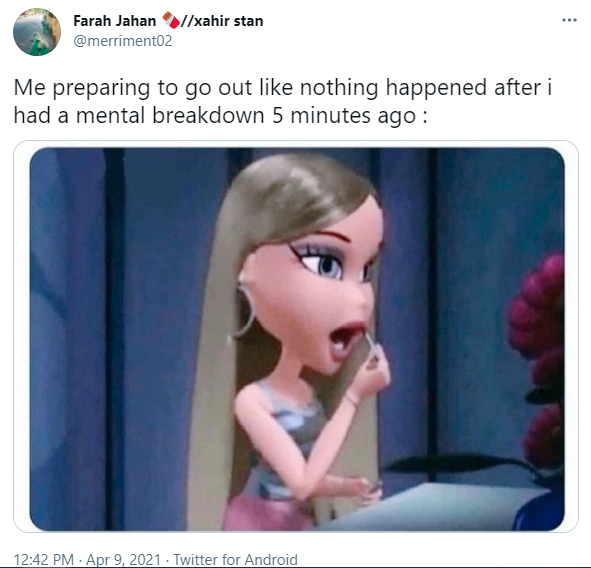 I feel like Bratz dolls are always used to describe our daily lives, and I'm so here for it. Because who cares if you have a mental breakdown on a daily basis, as long as you look as hot as a Bratz doll right after? Bratz dolls demonstrate that you can always bounce back.