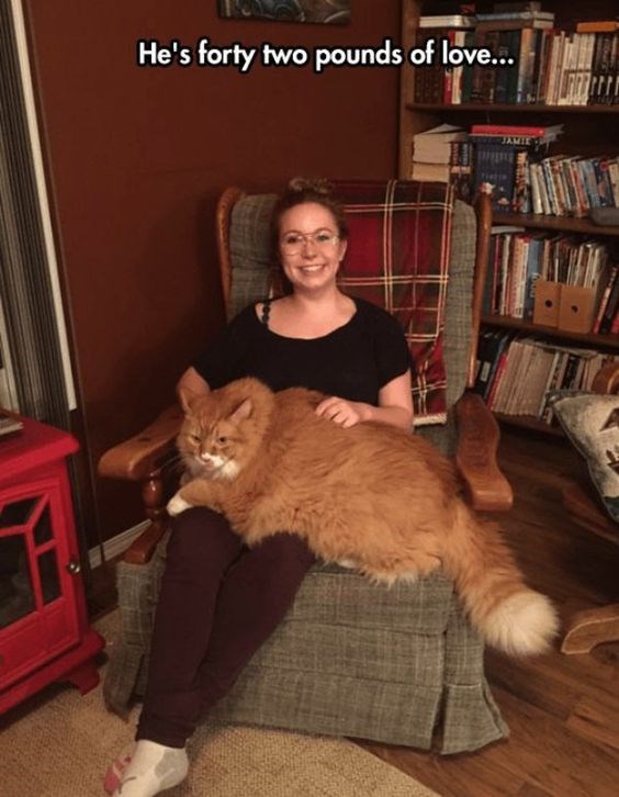 This Maine Coon is a huge kitty - imagine having 42 pounds of fluffy kitty on your lap. But we wouldn't mind sharing our couch with this cutie.