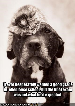 Trevor desperately wanted a good grade in obediance school, but the final exam was not what he'd expected.