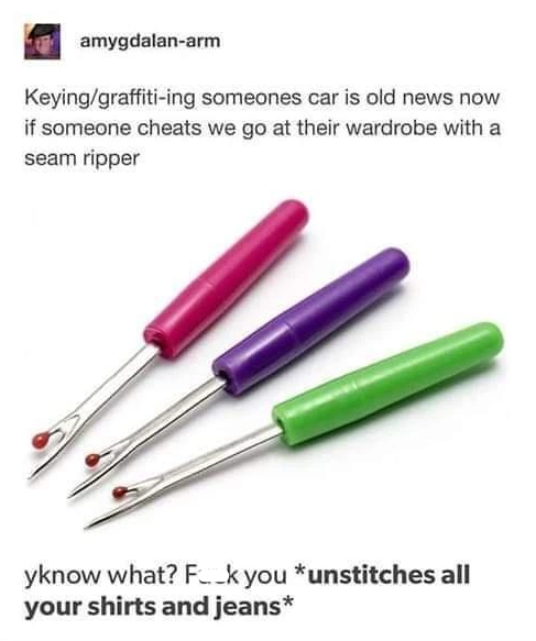We're no strangers to the pettiest revenges of the most petty people, but this is so specific and weird that it's just kind of awesome. If anyone thought that sewing didn't have the potential to be a merchant of chaos, then they didn't know things like how Tumblr's yarn community has serious drama.