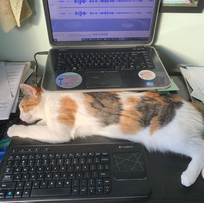 That is one darn photogenic cat, my goodness! Small and compact enough, the hard worker in the photo is able to work around this cat but still, it can't be easy. Rather than just moving the cat to their lap or to the side, the cat has decided their owner's fate, hehe.