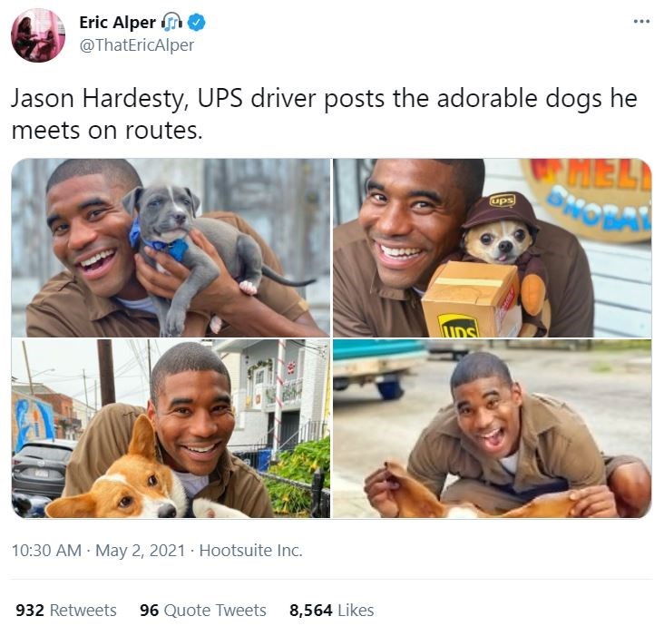 This is one of those tweets that remind us to look for the good things in our jobs that we maybe haven't appreciated yet. It's easy to get drained, it's easy to say that the money makes it worth it, but sometimes, little things like seeing a puppy on your route can make your day. We hope you have a great day at work, everyone!
