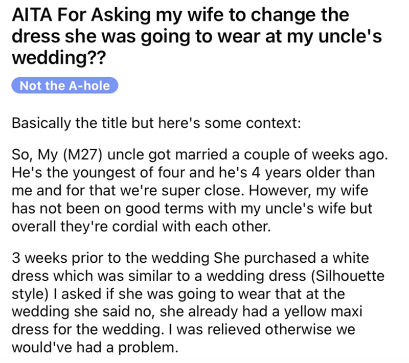 Woman Wants To Wear White Dress To Wedding, Husband Shuts Her Down
