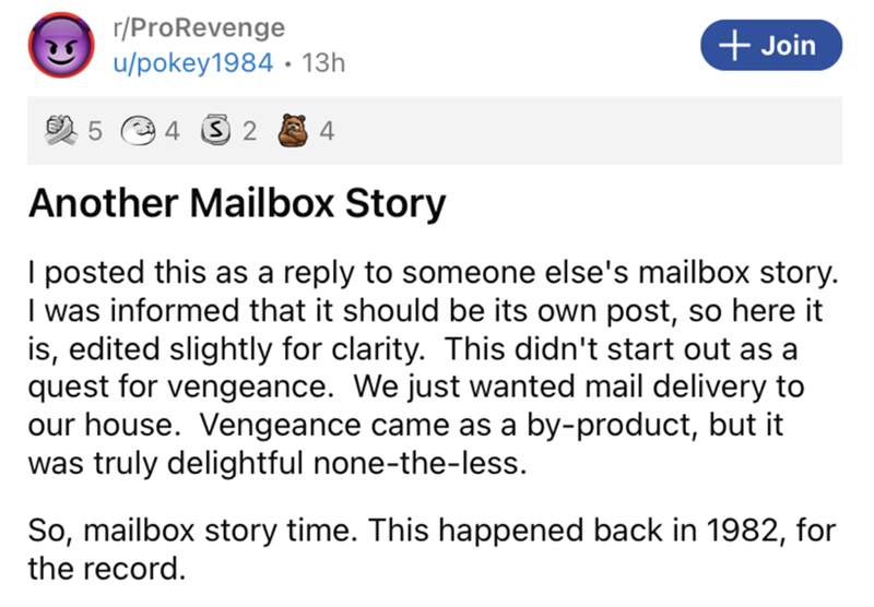 This isn't the first time that we've encountered a glorious tale about a character using a mailbox to enact a truly brutal revenge on someone else, and we highly doubt it'll be the last time. In this case, it sounds like dad hit his breaking point when it came to his mailbox being abused by an inconsiderate road grader. For some more mailbox drama check out this story about a scoundrel who ran down a family's mailbox, and then how the family created an invincible mailbox in response.