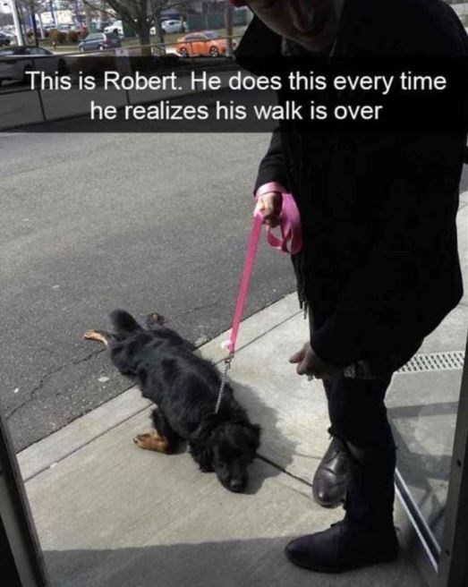 Robert is the best boy, and you should definitely be making his walks longer. Doesn't matter if the walks would stretch to the length of an entire day, our priorities must be making sure that Robert does not faceplant like this on the sidewalk ever. He is so cute. Please. We want to take him on a walk so badly.