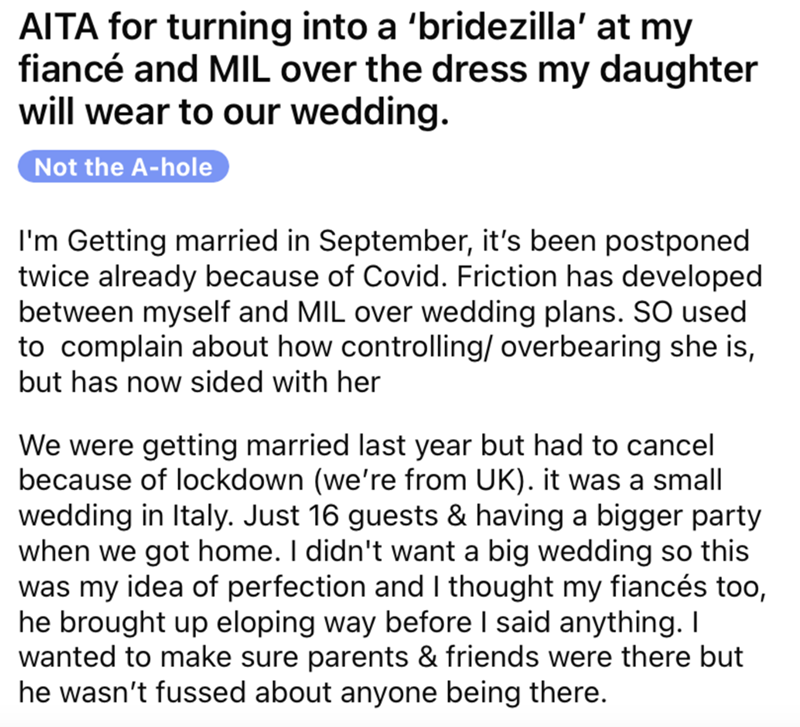 Bride Refuses To Use Flower Girl Dress Mother-In-Law Bought