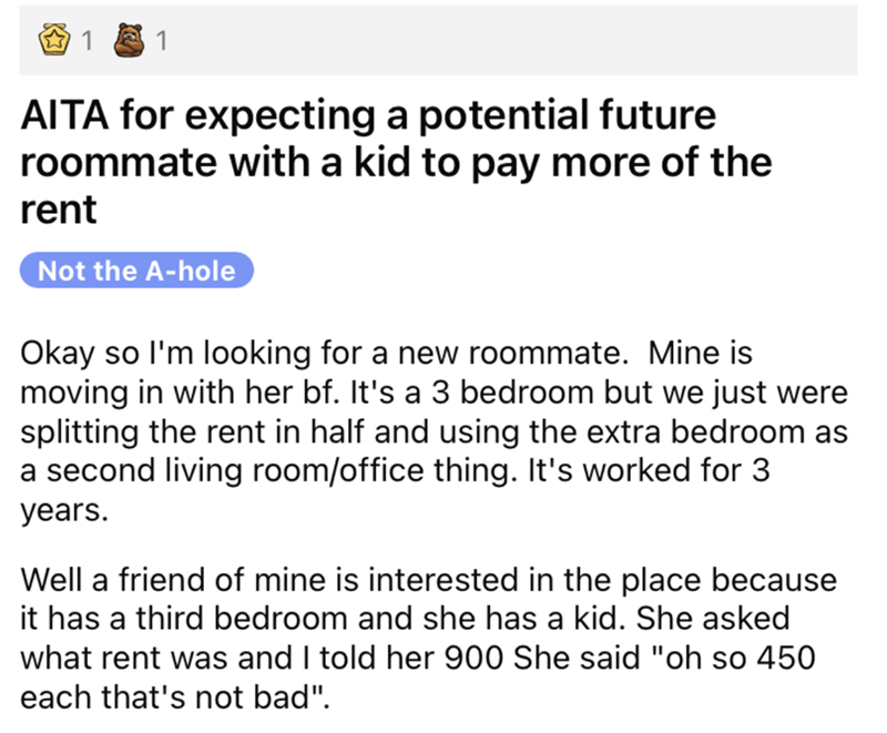 New Roommate Rents Two Rooms, Only Expects To Pay For One Room