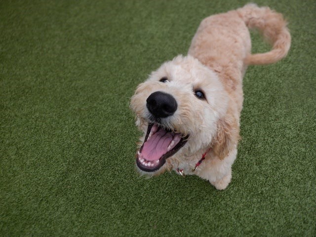 This cutie looks like he's ready for another round of catch! Whether its a stick, a tennis ball, or even a basketball, he is prepared for immediate retrival.
