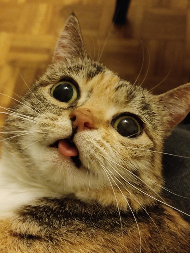 Priceless blep moment, captured! It's the whiskers for us. This kitty cat looks like he may have just seen a ghost. We here at the office are so glad that his owner managed to capture this purrfectly goofy blep moment.