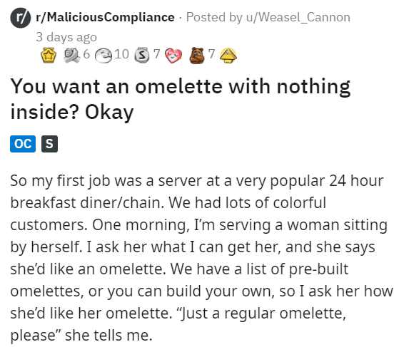As someone who has worked in the food industry, it can be so difficult to not get smart with customers. There's the saying "the customer is always right", but anyone who has worked in the customer service industry knows that this doesn't always hold up. There will always be a Karen who thinks you can read their mind or thinks that everything they say is absolutely correct. Moral of the story is tip your waiters and treat people with kindness. They deal with mean people every day, so be a shining light in the darkness.