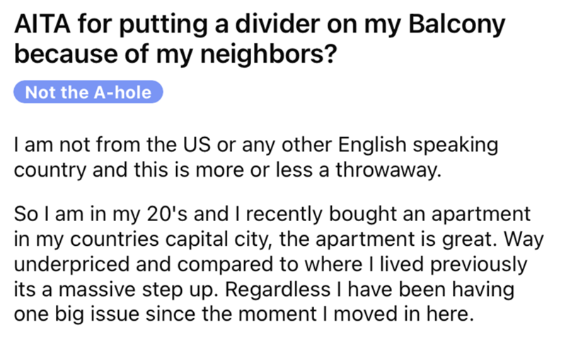 Tenant Puts Divider On Balcony, Talkative Neighbors Take Offense