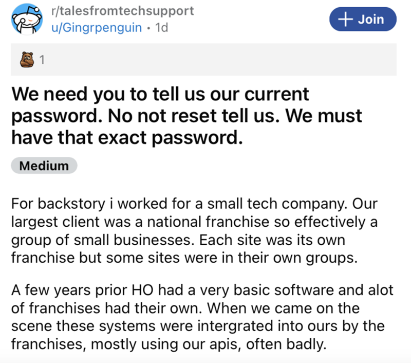 Hopefully at least someone involved in these wild series of conversations felt nothing short of immense gratitude over the fact that their business wasn't completely destroyed by a user that had the wherewithal to try out the password assigned to every user. It sounds like the company got by purely because nobody ever honestly thought that the password could be so obvious. Somehow, that whole approach to security seems like it can work sometimes. Just a bit of a gamble. For another ridiculous tech support tale check out the time that a customer thought that the internet runs on magic.