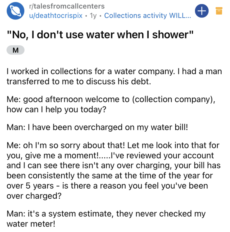 Guy Complains About Utilities Bill, Claims To Not Use Water, Takes Showers