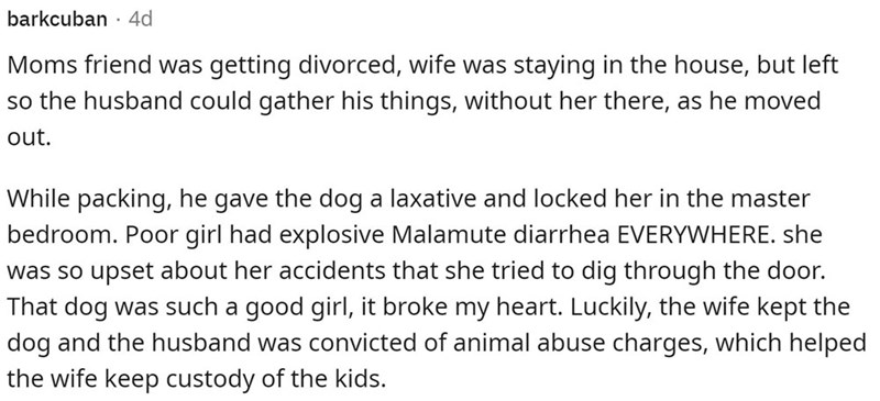 Divorce is rarely pretty. Although it means that two people who no longer work together can go their separate ways and be happier alone or with someone else, it's a messy process. From custody arrangements to dividing assets, it's heartbreaking when two people have to take a life they've built together and split it in half. Of course, in an ideal situation, the couple tries to get the process done as amicably as possible, but we say most for a reason. Others, unfortunately, approach the divorce in the most spiteful, immature, and petty as possible. These Redditors who shared their experiences of the craziest things their ex-spouse did to them after getting divorced have left us shook—truly— and show us just how petty people can get. If you're looking to feel better about your divorce, read these stories of total crazy. You can thank us later!