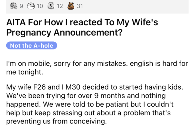 Wife Announces Pregnancy, Husband Assumes It's A Joke, Cringe Ensues