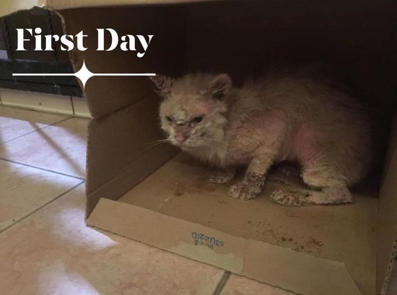 Nur Hamizah, the 30-year-old housewife, decided to help the cat who was clearly unable to take care of itself and wouldn't have survived for long on its own. Slowly, she coaxed the cat into a cardboard box and brought it to her and her husband's home. Initially, Nur Hamizah explains that the cat - now named Meimei - was "very scared of them," making her suspect that Meimei may have been abused and abandoned by someone else.