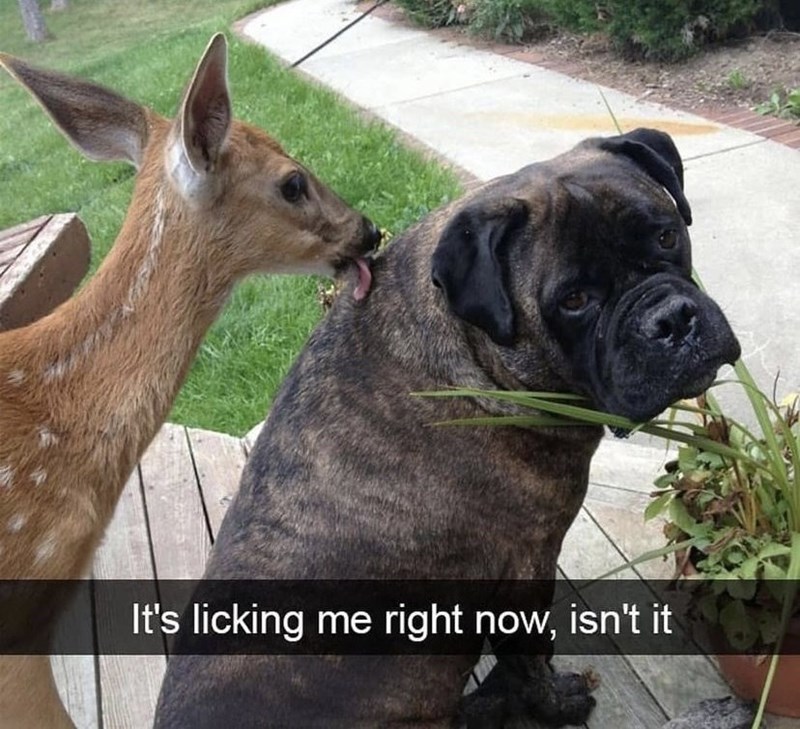 It sure is buddy! And it is looking awwdorable while doing it, too! Unfortunately, doggo does not seem as enthusiastic about this situation as we do. We can't help it. It's so darn cute.
