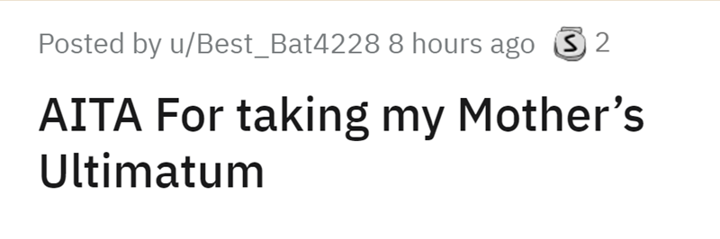 It was Reddit user u/Best_Bat4228 who took to the 'Am I The A-Hole' to ask if they were in the wrong for taking their mother's ultimatum. Spoiler alert, OP wasn't given much of a choice...
