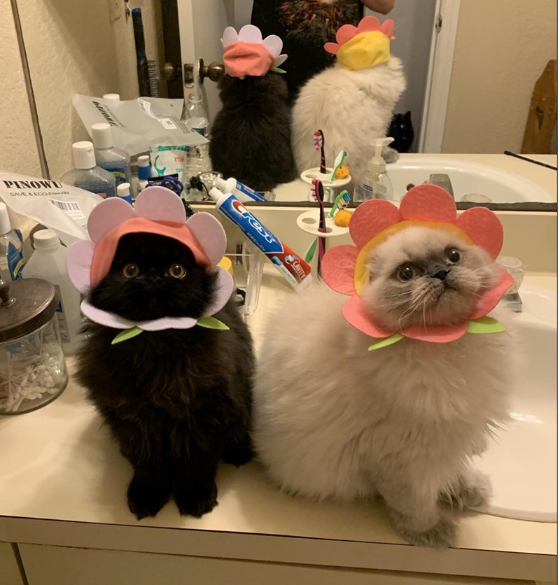 So gosh darn cute we could pick these lil flowers and make a kitty cat bouquet out of them!! It's the under chin bibs for us. This is really too much wholesome goodness for one picture, but we'll try to manage.