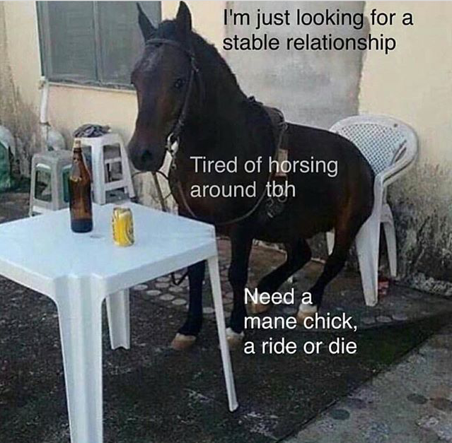 It's no secret that we're fans of wordplay, and this meme checked all of our boxes. Not one, not two, but their awesome puns. We will admit we let out a little neigh for this one. Not to mention it's super relatable.