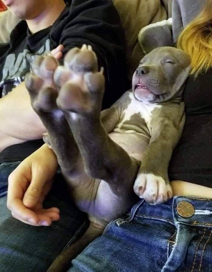 It's the toe beans for us. Those outright outstretched doggo legs just can not possibly be comfortable for optimal sleep. This sleepy guy is too cute for words. Sweet dreams little buddy, you are looking cozy wozy.