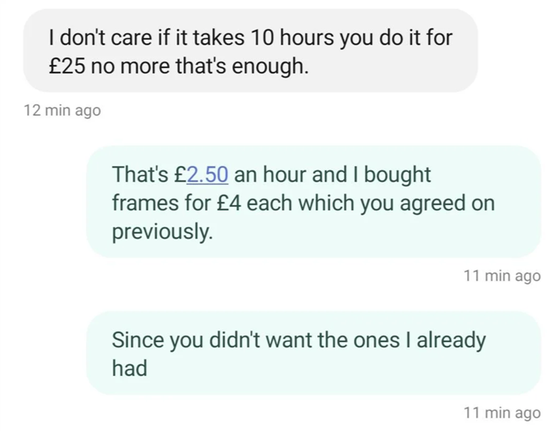 Oh boy, these wildly entitled choosing beggars just keep coming right on out of the woodwork. It sounds like this choosy beggar was carrying themselves in such a way where it was only a matter of time before they got the necessary reality check. Maybe they should go and have a conversation with their manager about how 17 bucks for 10 hours of work could actually be a legitimate transaction. Check out some more entitled people who made the world a less friendly place over here.