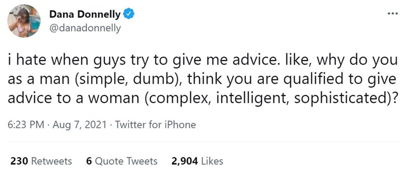 Welcome to your mid-weekly haul of the funniest 'women roasting men tweets' we found from the past seven days. Each week, we scour Twitter to bring you the wittiest women who have had it up to here with men. We serve you the best of the best, and this week is no different. Scroll through, have a chuckle, and then move onto this batch of 'women roasting men tweets' for more savage humor.