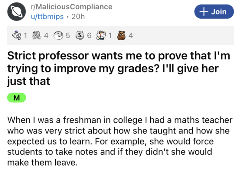 School can really suck sometimes. Fortunately, Redditor u/ttbmips found a pretty amusing way of getting back at a college professor's mistake after accidentally finishing a test way earlier than necessary. The user in question posted to r/MaliciousCompliance, explaining that the professor had read the time wrong during an exam, leaving OP to rush to finish while students who remained once the professor realized her mistake received 20 extra minutes to work. When the professor asked later on for students to describe what they would do to prepare better for future exams, OP simply said they'd bring their own watch to make sure they had the time correct. This uppity professor scoffed at this, but when the final exam came around, OP said they got a perfect score and submitted a photo of their watch as evidence they prepared better this time.
