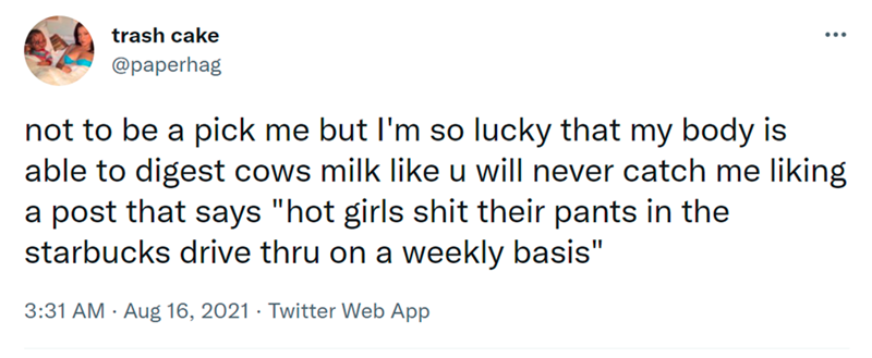 I may or may not be one of the girls shitting at the Starbucks drive-thru. That's a secret I'll never tell.