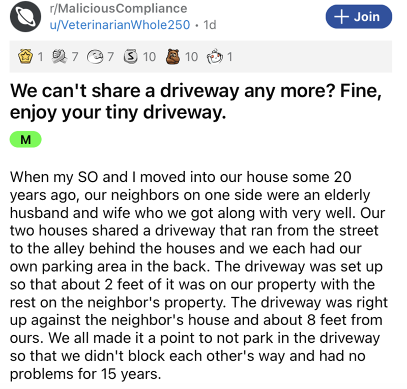 It sounds like Mike was really just asking for it, man. There are some people that move into new neighbors and just proceed to start up all kinds of conflict that quite simply needn't ever have been started in the first place. Mike definitely fits the bill for that kind of villainous character. Fortunately, the neighbor that Mike messed with was more than ready to clap back with some sweet malicious compliance. Keep that neighbor drama train rolling with this post about the petty things that people did to combat neighbors.