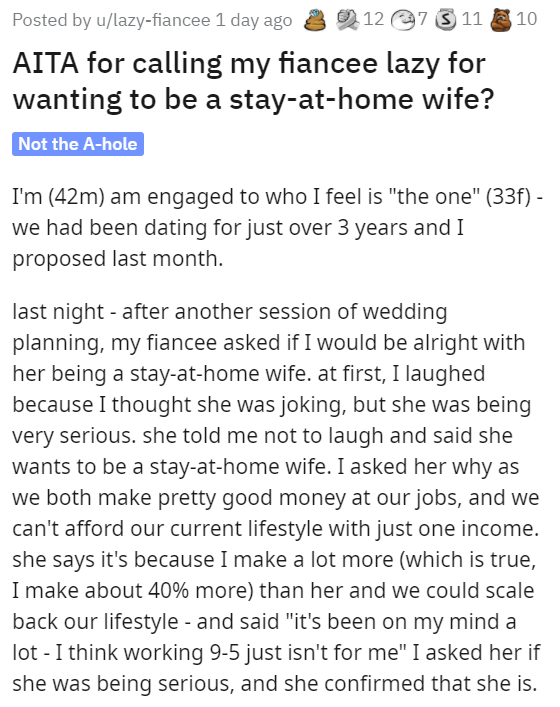 Fiancé Wants To Be Childless Stay-At-Home Wife, Disagreement Ensues