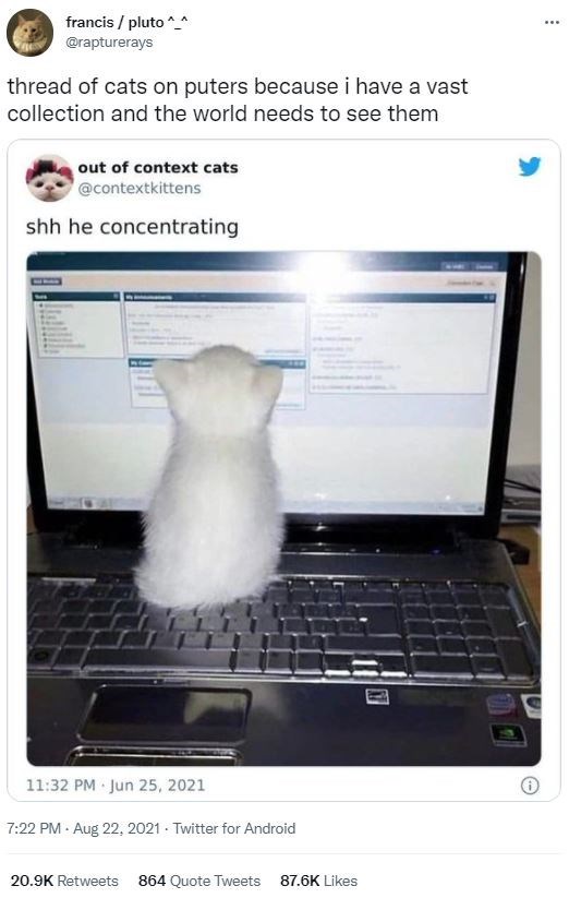 Never did we think that a thread of kittens and cats interacting with computers would make us so heckin' happy, but it really did. Going through this most wholesome content somehow managed to actually make us smile, so we thank you for collecting these pictures and sharing them with the world. They internet did you right by having you go viral.