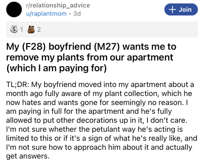 Man Bad-Mouths Girlfriend's Plant Collection, Reddit Reacts