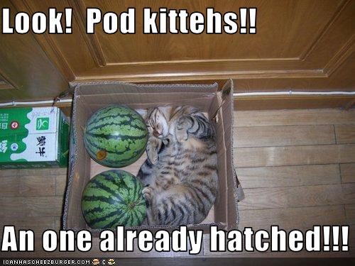 Look! Pod kittehs!! An one already hatched!!!