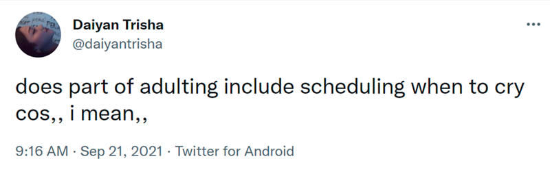 I have a crying session scheduled once a week.