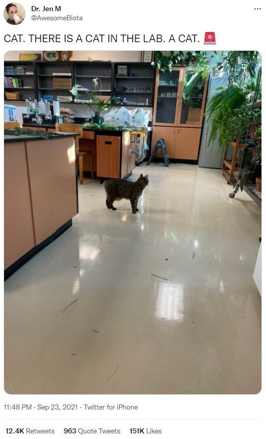 Instantly, a pause. You have to pause, stop everything that you are doing and admire this beauty. This is a cat who is on a mission. A world domination mission. We always underestimate them, thinking that they are too lazy to try to take over the world. But now they are looking into the scientific method… we should be very worried.