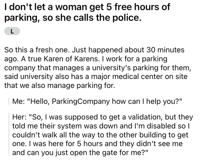 Woman Expects Five Free Hours Of Parking, Gets Rejected, Calls The Police