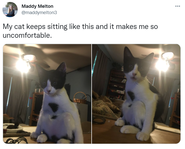 Ah! What is that cat doing? We get it man, sometimes you just want to be comfortable, but still, it looks so weird, almost as if the cat is pooping the way humans do. Never-the-less there's no need for the hooman to get so upset over this cuteness.