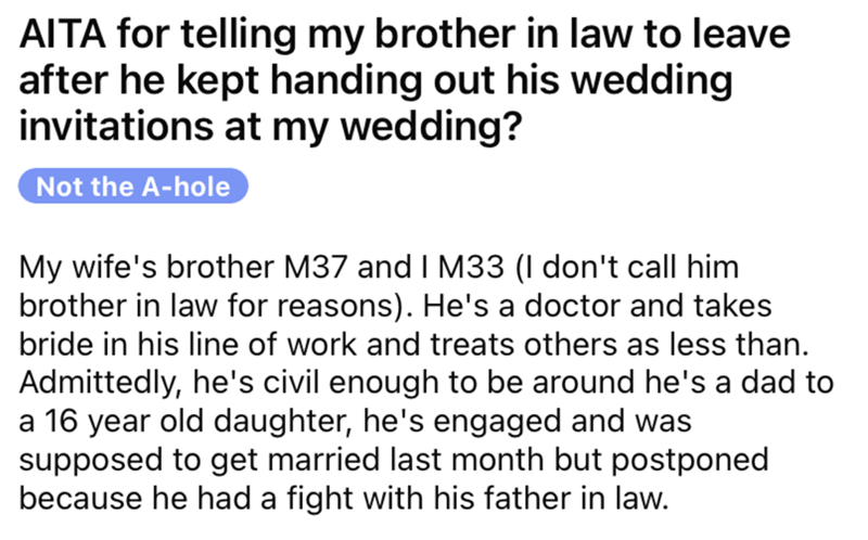 Groom's Brother-In-Law Hands Out Wedding Invitations At His Wedding, Gets Told To Leave