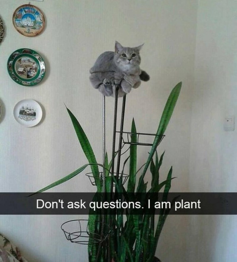 Anyone who has cats never even considered questioning this little dude. We all know that cats refuse to abide by the rules of gravity. They will sit anywhere, they will fit anywhere, and sometimes, they'll sit sideways on the arm of our couch just to mess with us. We love cats. And we love this little floofball.