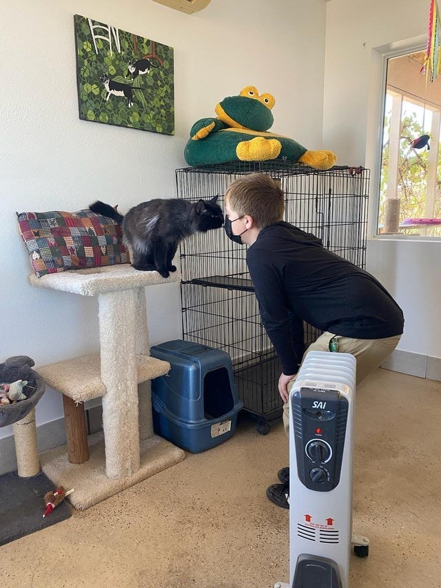 "My kid's school requires 15 volunteer hours a semester. He got a position socializing cats at a local shelter. He's already well over his 15 and still going every weekend."