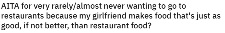 Greedy Man Won't Take GF To Restaurants Because He Prefers Her To Cook