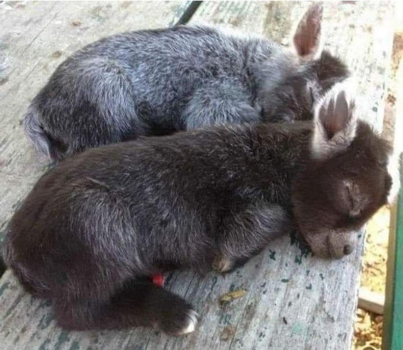 Aww, just look at how peacefully these two awwdorable baby donkeys are sleeping together. They must be donkey siblings because they have the same ears and awwdorable gray speckled coats! Here's a fun fact about donkeys, they're even stronger than horses are! So a baby donkey could win tug of war against a baby horse, that's for sure! Ah, they're just so stinking cute!